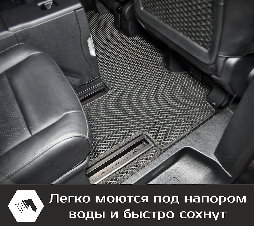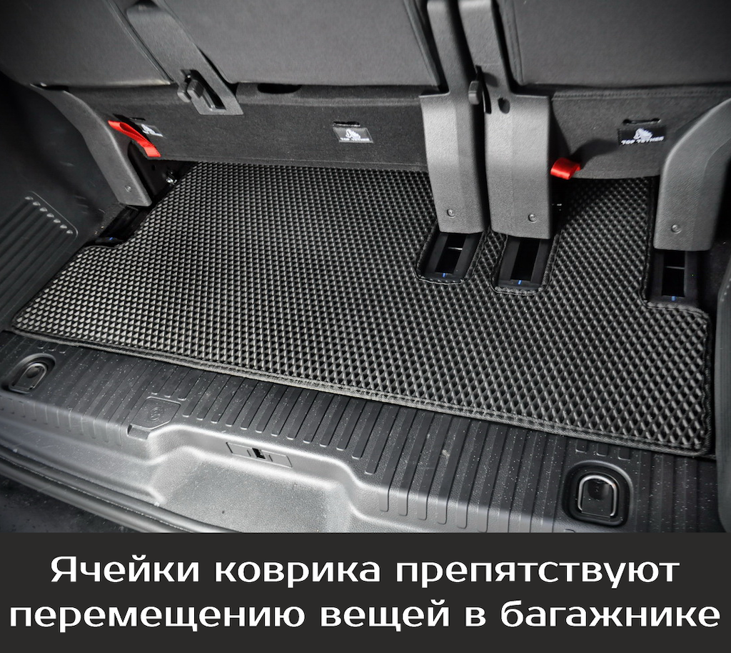 Нижняя часть ковра изготавливается из термопластичной резины с шипами 2-3 мм по всей поверхности, что предотвращает скольжение коврика по салону автомобиля.