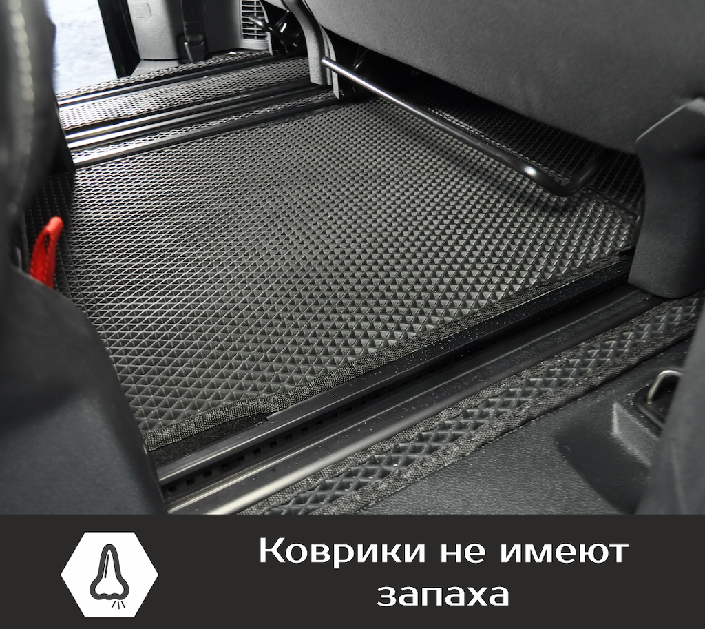 Нижняя часть ковра изготавливается из термопластичной резины с шипами 2-3 мм по всей поверхности, что предотвращает скольжение коврика по салону автомобиля.
