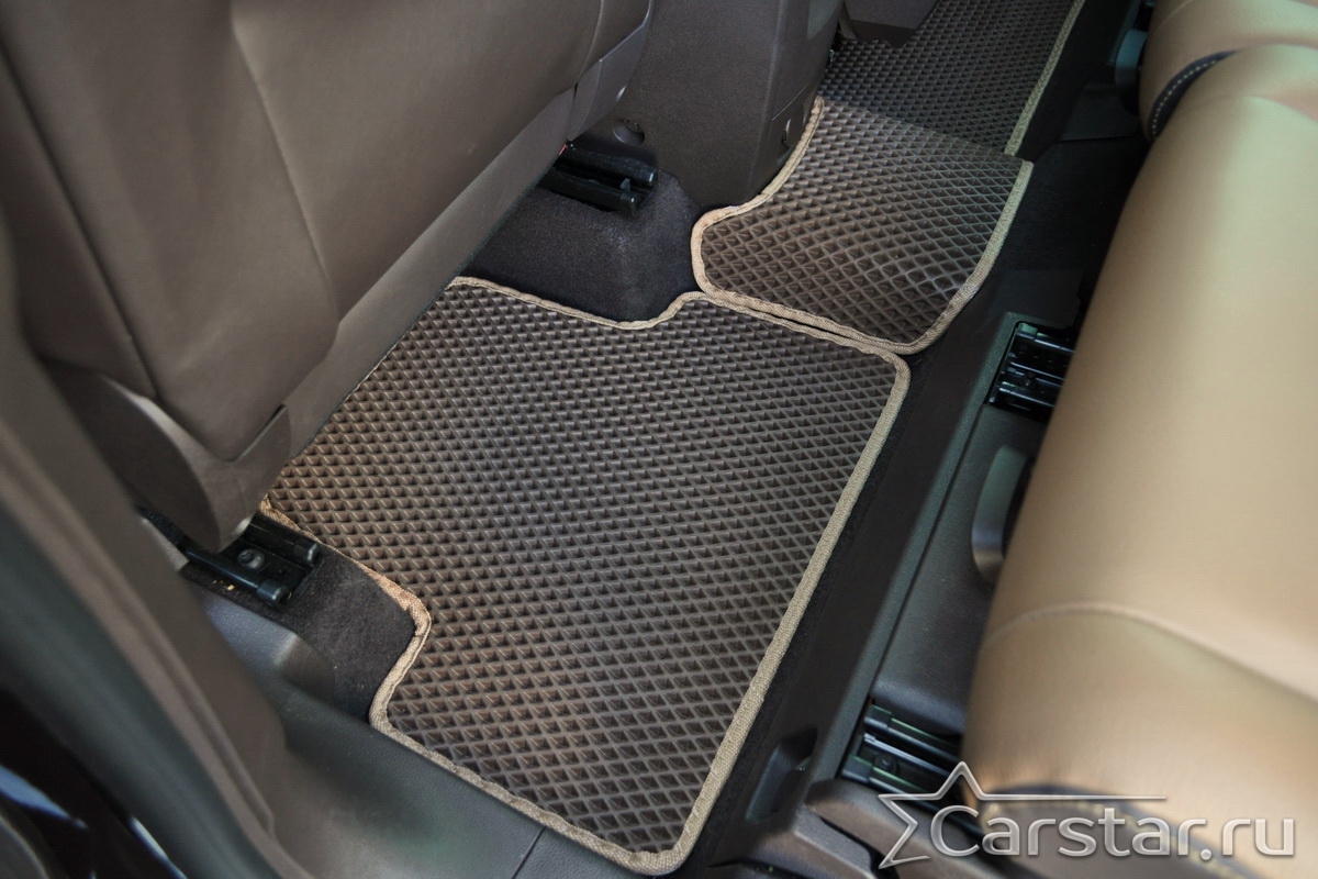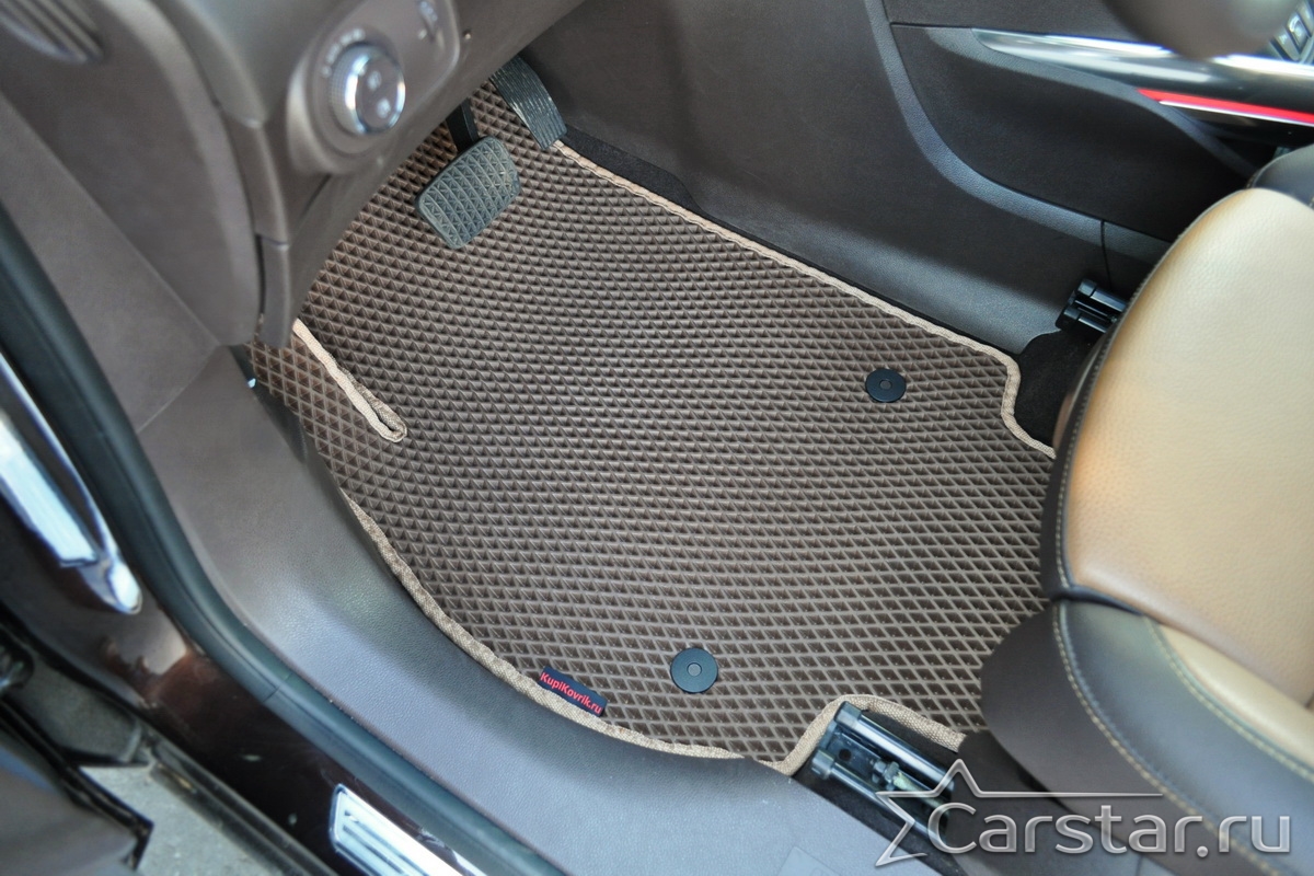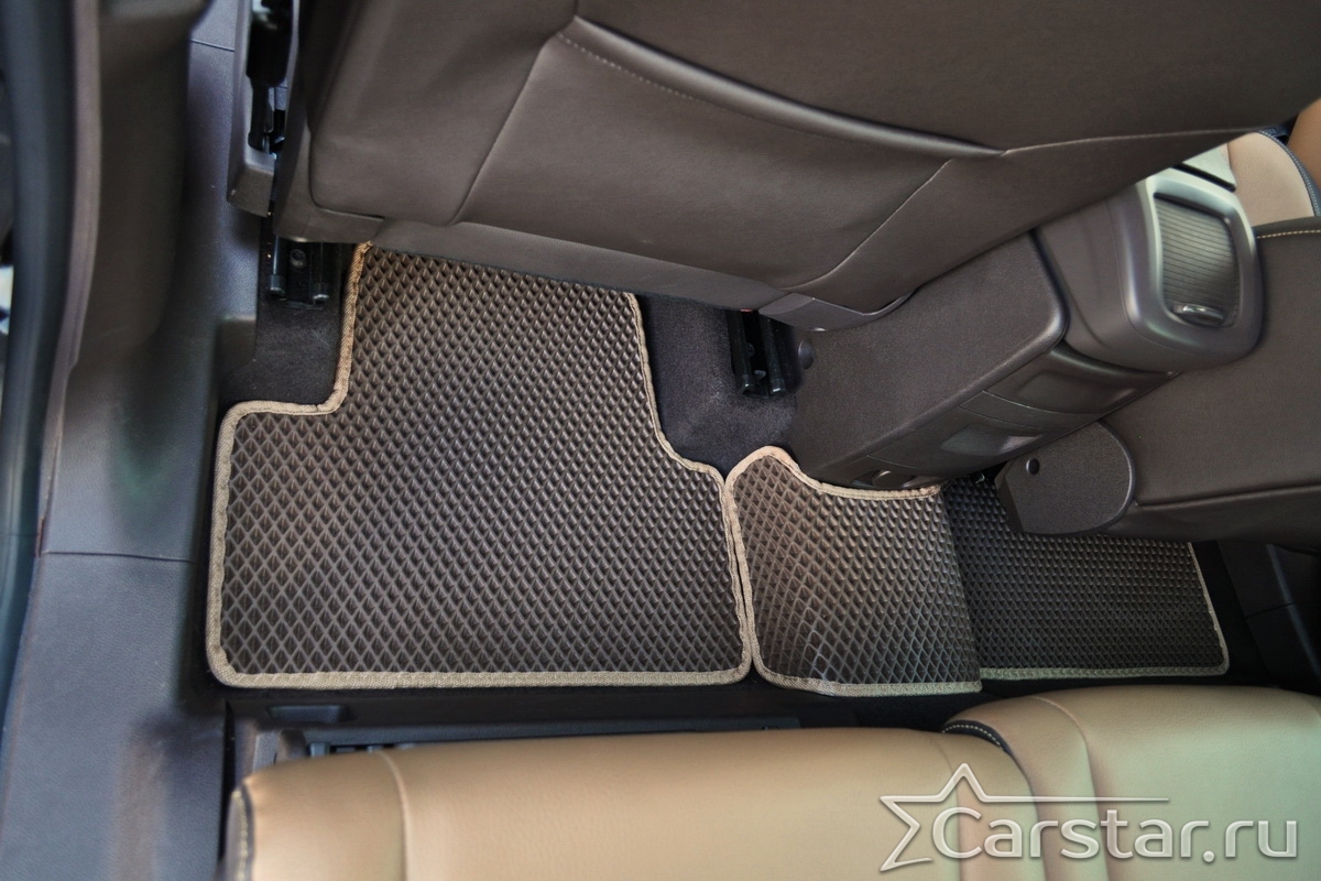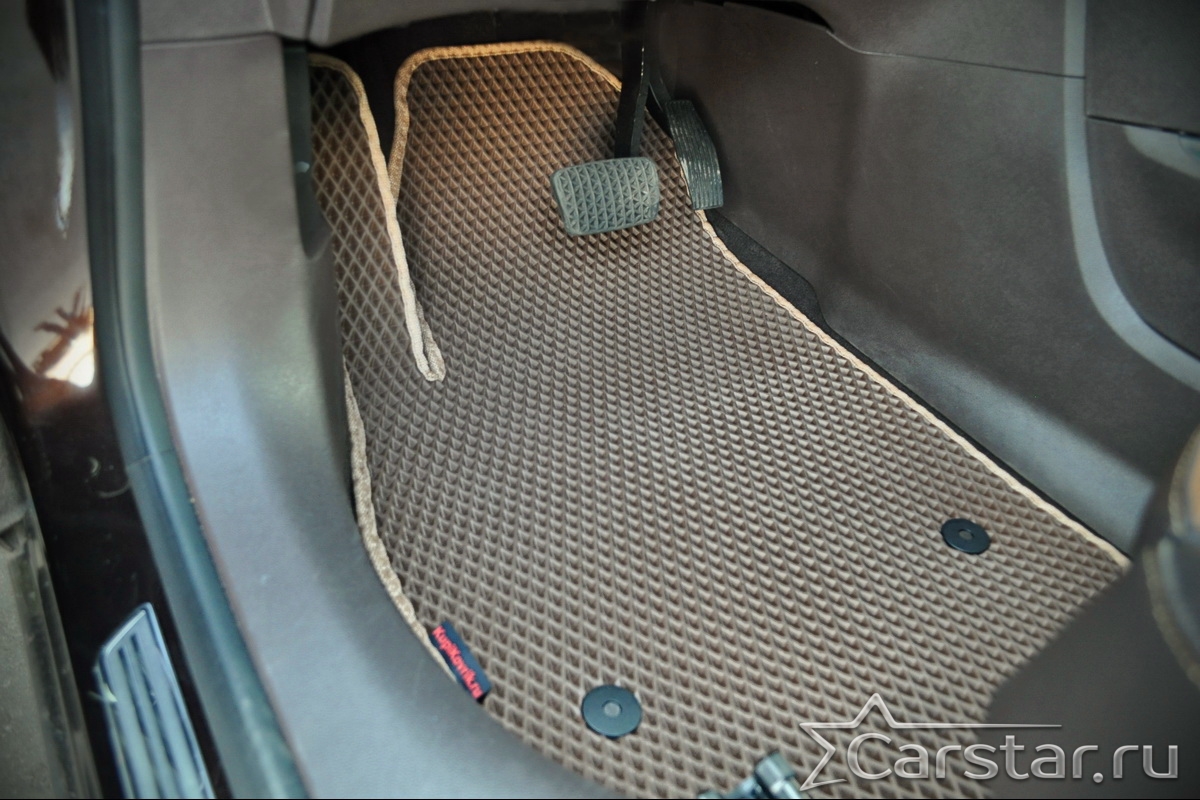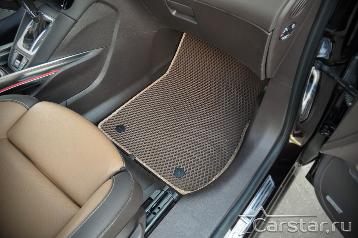 Текстильные коврики надёжно крепятся с помощью оригинальных систем фиксации. Обратная сторона имеет противоскользящее покрытие, что обеспечивает защиту от смещений и безопасность. Максимальное удобство достигается точными лекалами.